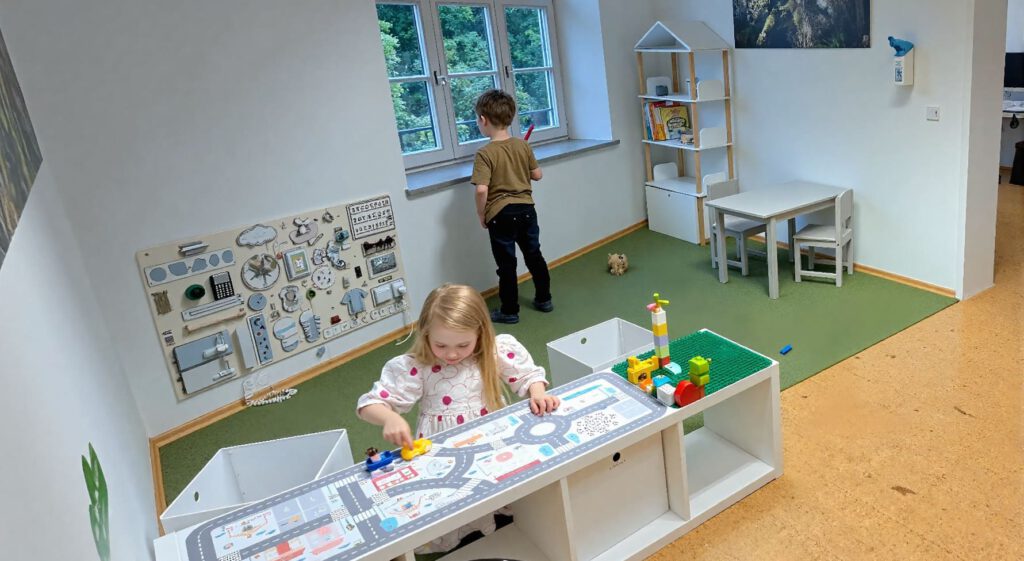 Je nach Alter und Kooperationsfähigkeit Ihres Kindes beginnen wir mit einer Voruntersuchung, um den aktuellen Visus zu messen und die medizinische Vorgeschichte grob zu erfassen. Danach können Sie und Ihr Kind im Kinderwartebereich Platz nehmen, wo eine entspannte Atmosphäre herrscht.